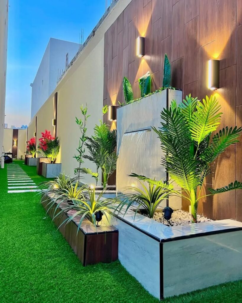 - العشب الصناعي: خيار ممتاز لصيانة منخفضة، ويتمتع بمظهر جميل.